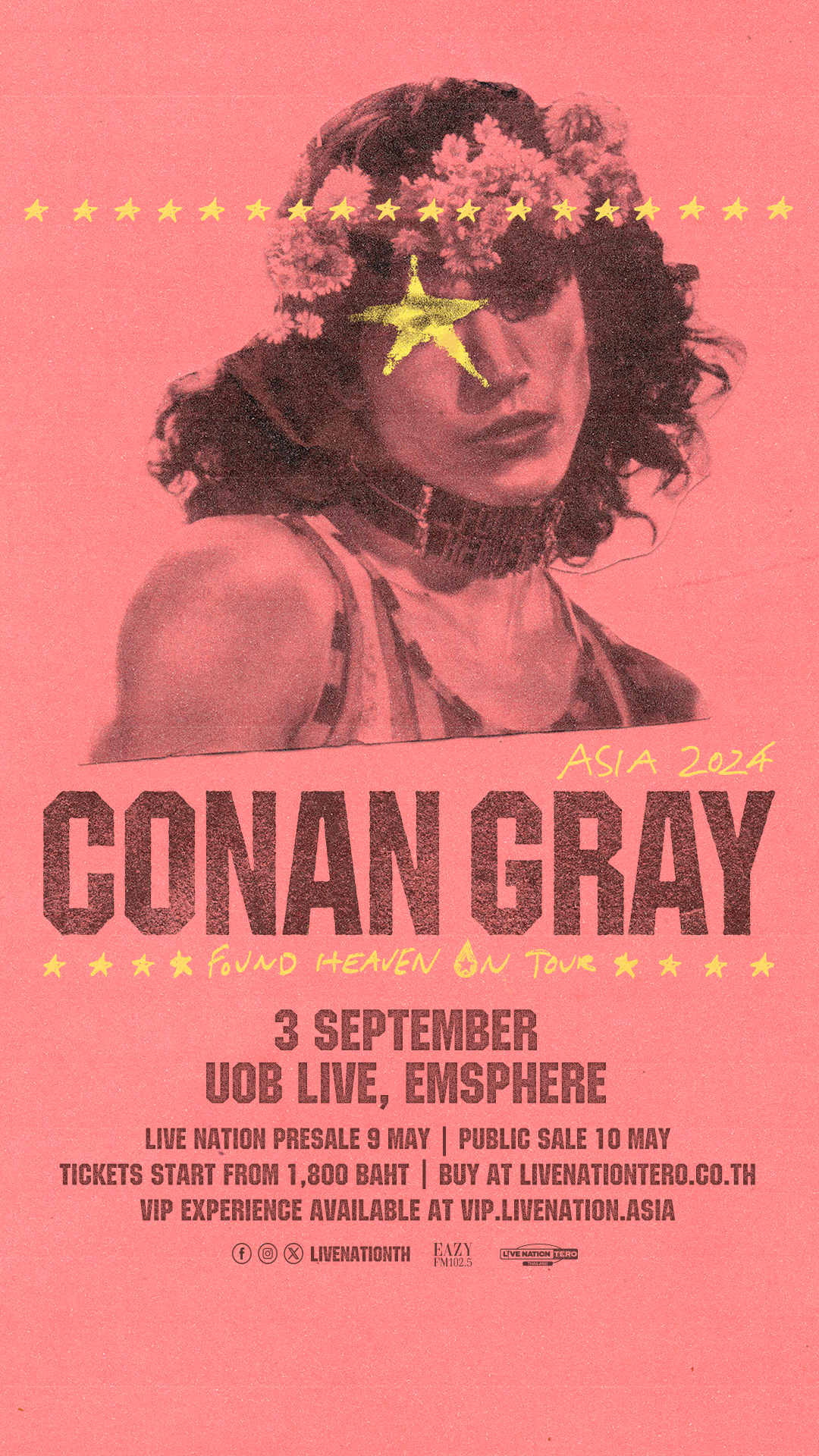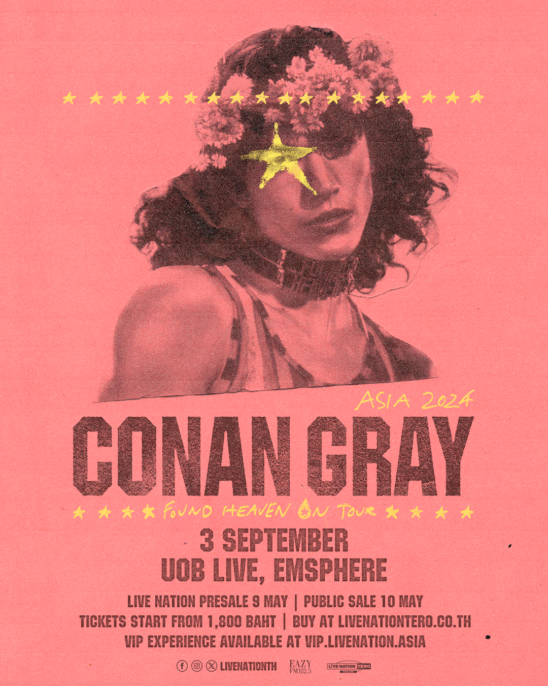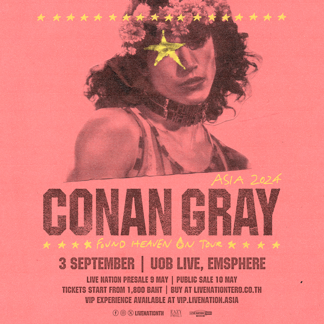 ศิลปินไอคอนแห่งวัยรุ่นเจนซี ‘Conan Gray’ (โคนัน เกรย์) ประกาศเอเชียทัวร์รับอัลบั้มใหม่ ‘FOUND HEAVEN ON TOUR’ (ฟาวด์ เฮฟเวน ออน ทัวร์) คิกออฟที่จาร์กาตา ก่อนจะมาเจอแฟน ๆ ชาวไทยในวันอังคารที่ 3 กันยายนนี้ ที่ยูโอบี ไลฟ์ เอ็มสเฟียร์