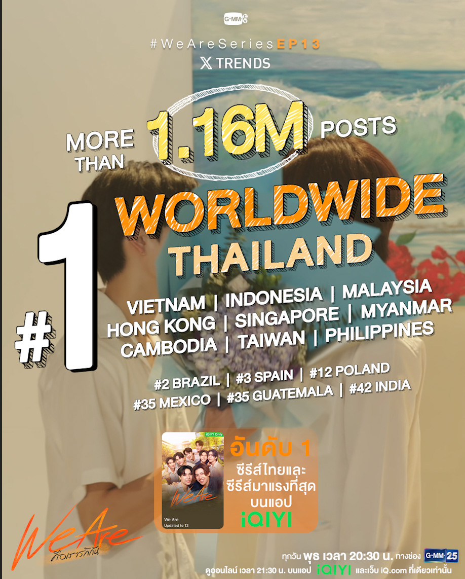 ปังไม่ไหว!! “We Are คือเรารักกัน” ฟินทะลุจอ ชาวเน็ตใจฟูกรี๊ดลั่นโซเชียล นั่งแท่นเทรนด์ x “อันดับ 1” Worldwide 6 สัปดาห์ต่อเนื่อง!!! และยังครองแชมป์ซีรีส์ไทย “อันดับ 1” บนแอป iQIYI >>